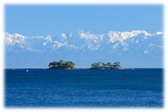 | 今年も暑い夏がやってきます 世界で最も美しい湾---有磯海から望むアルプス. 立山連峰を思い出すと.冷気が心の中に入り. 明日への勇気が増します味しいものばかり、立山の雪景色も観れたのがなによりでした。  |
