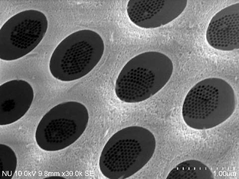 ![]() (上写真)多数の穴の中を拡大してみると、さらに小さな穴がたくさん見えます。(右写真) |